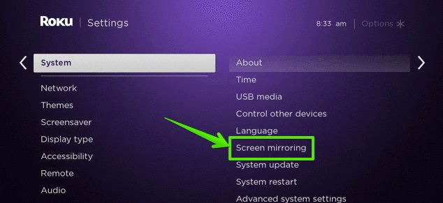 Step 2: Go to Roku Settings > System > Screen Mirroring > Activate it. This will make the Roku discoverable nearby.