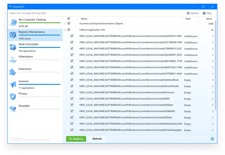 Because of its numerous appealing features and ease of use, MacPaw’s CleanMyPC has risen to the top of our list of the best registry cleaner software for Windows 10 & previous versions. When it comes to fixing old Windows registry entries, the application is quite effective. Aside from removing registry trash, the program can also be used as a junk cleaner, application uninstaller, file shredder, and other similar functions.